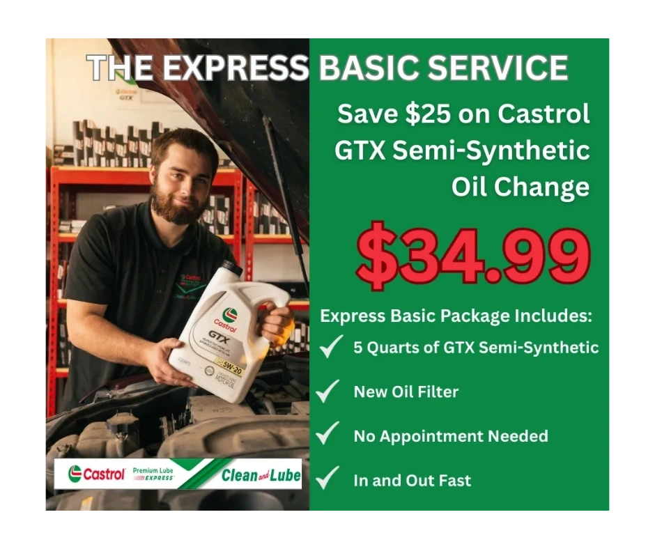 Save $25 on a Castrol GTX Semi-Synthetic Oil Change. $34.99