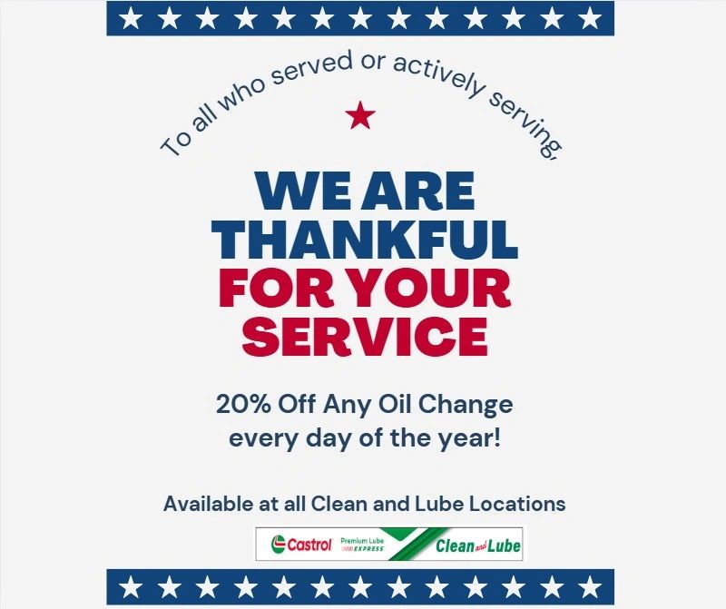 All retired or actively serving Veterans get 20% Off any oil changes services.